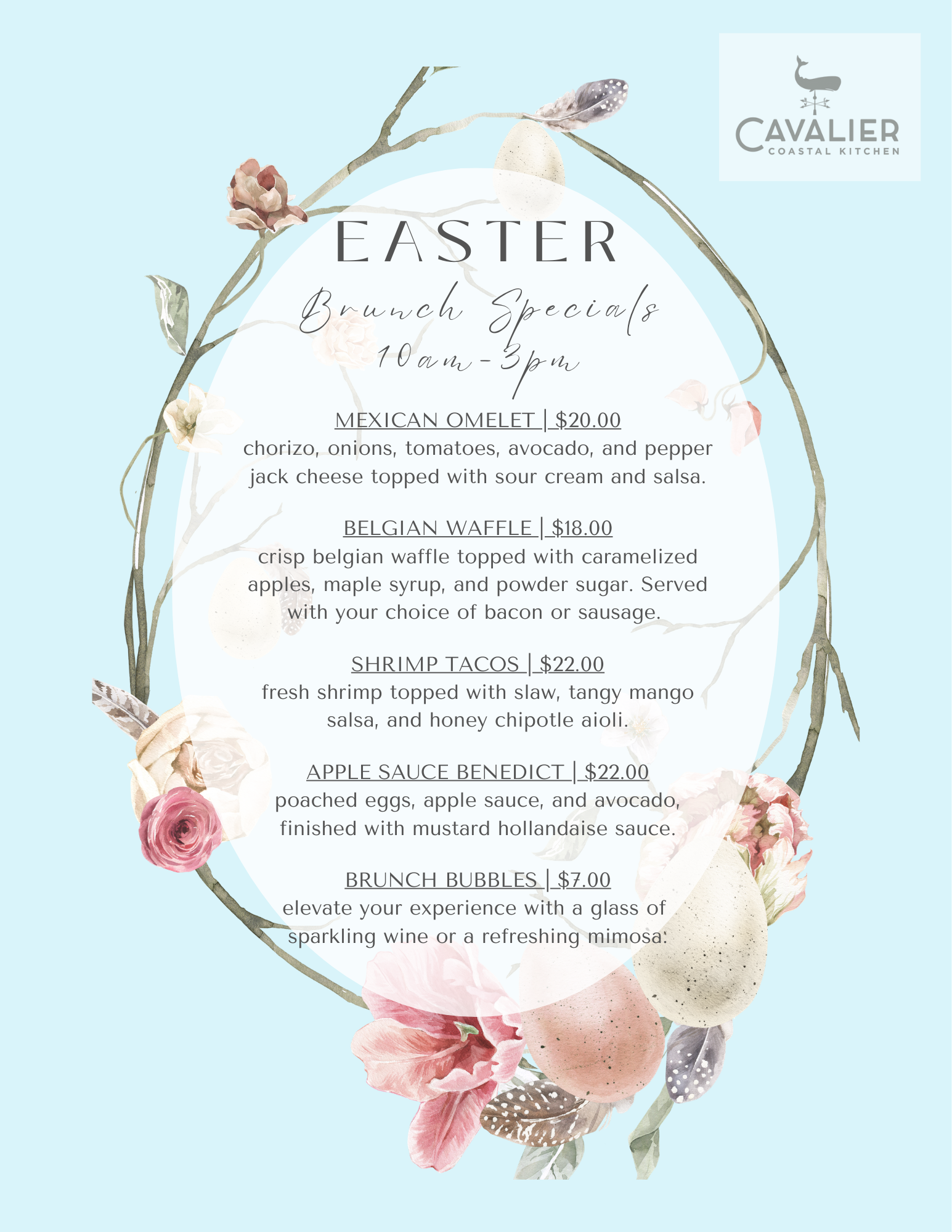 Treat yourself to a tasty lunch at Cavalier Coastal Kitchen. With a robust menu full of elevated lunch favorites, you're sure to find the perfect fit. Choose from a tasty BBQ Burger, Fish and Chips, Grilled Salmon Salad and more.